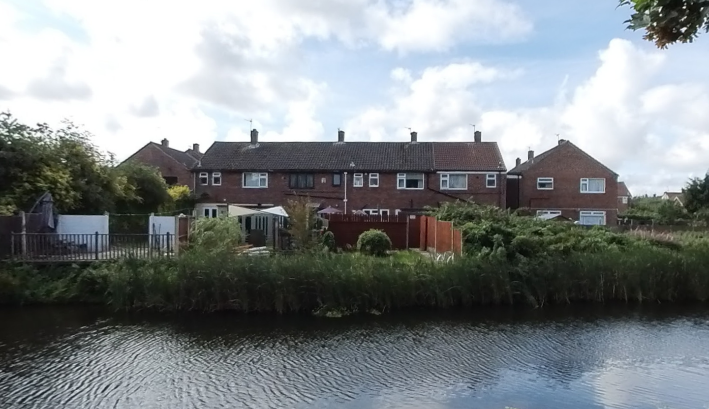 - Canal aspect: The house backs onto the offside of the Leeds and Liverpool Canal. Three of the four houses in this terrace, including this one, appear to have extended their gardens with canalside terraces. I would want to check whether the freehold included this area. In the Streetview image below, I believe the house is the second from the left with brown windows.