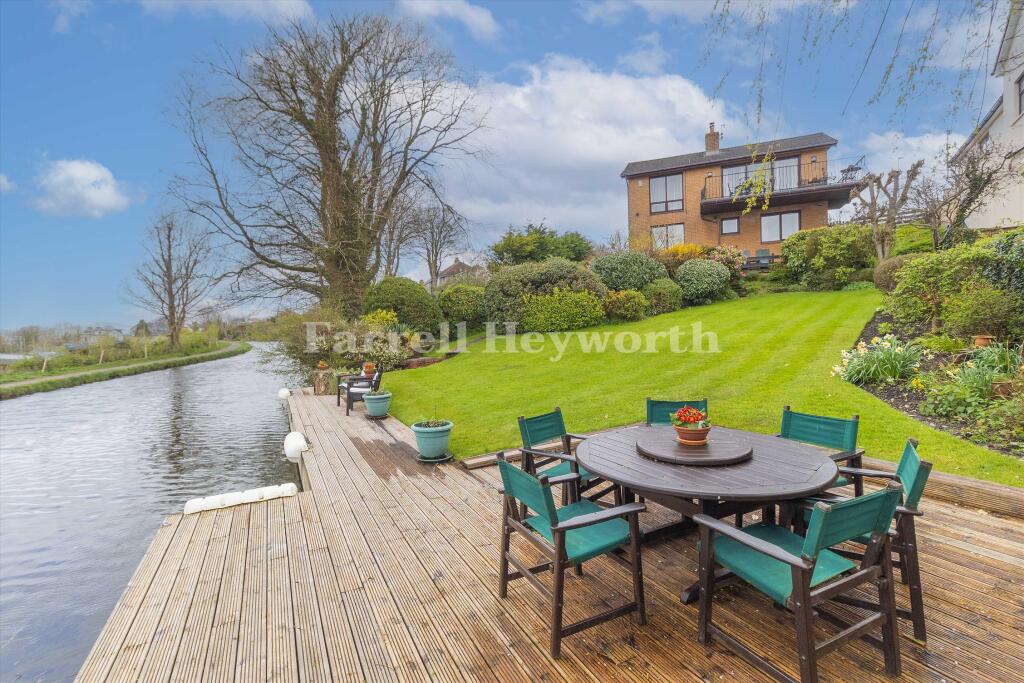 - Canal aspect: This one's a cracker. It's on the offside of the Lancaster Canal, with a lovely ready-made decked mooring to apply for. Offside properties rarely come up in this area, although I see quite a few with the towpath at the top of the garden and no canal view. This one has spectacular views down the garden, especially from the wrap-around balcony.