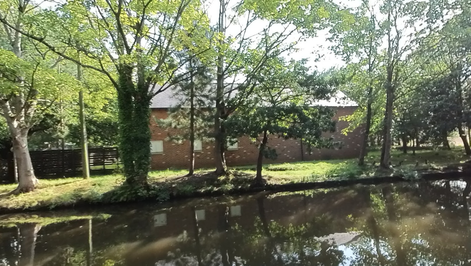 - Canal aspect: This is a development opportunity with existing planning permission to restore and convert a detached coach house into a five bedroom detached house. The coach house is at the far end of the grounds of Moore Hall (also for sale at the time of posting). It backs onto the offside of the Bridgewater Canal and sits in a plot of over an acre with a large outbuilding (as I believe). Here is an image from the towpath opposite, on Streetview. There may well be potential for a mooring here.